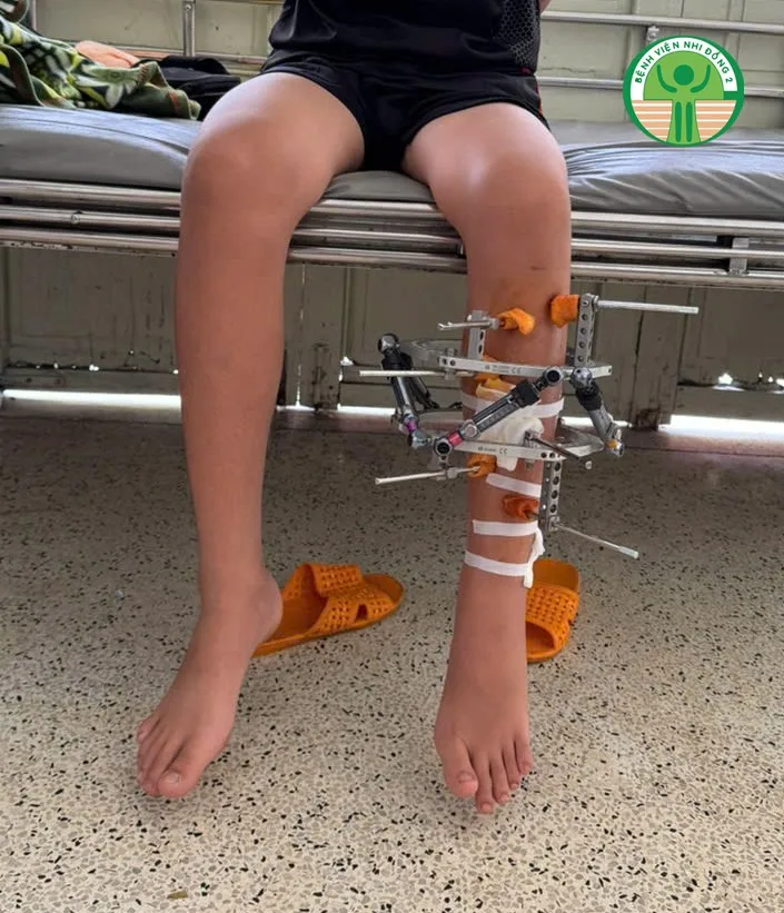 Một cậu bé 13 tuổi bị thiểu sản xương mác vừa được các bác sĩ Bệnh viện Nhi đồng 2 TP.HCM cùng các bác sĩ ở Pháp kéo dài chi bằng khung cố định ngoài, giúp chỉnh lại trục chân và cải thiện chênh lệch chiều dài chi.